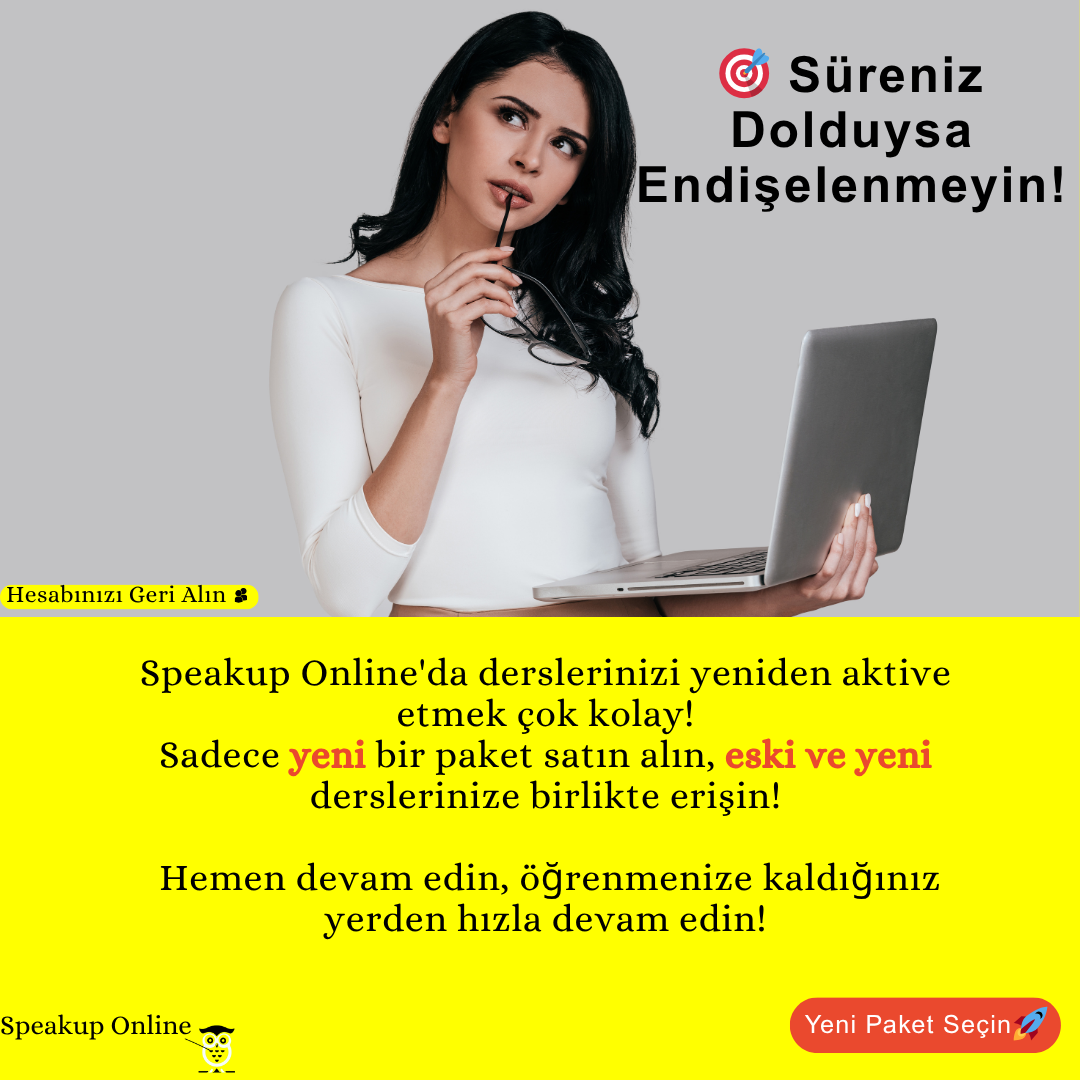 İngilizce öğrenmeye sıfırdan başlamak istiyorsunuz, ama nereden başlayacağınızı bilmiyor musunuz? A1 İngilizce, yeni başlayanlar için mükemmel bir başlangıç noktası sunar. SpeakUp Online, anadilli eğitmenler ve interaktif araçlarla a1 İngilizce öğrenmenizi kolaylaştırır. A1 İngilizce nedir mi merak ediyorsunuz? Bu seviye, temel kelimeler ve günlük ifadelerle iletişim kurmanızı sağlar. A1 seviyesi İngilizce kelimeler ve a1 İngilizce konuları ile hızlıca ilerlersiniz. SpeakUp’ın esnek dersleri, Türk öğrenenler için idealdir. Hemen başlayın ve İngilizce yolculuğunuza adım atın! SpeakUp Online’ın ücretsiz deneme dersine katılın ve a1 İngilizce öğrenmenin keyfini keşfedin.